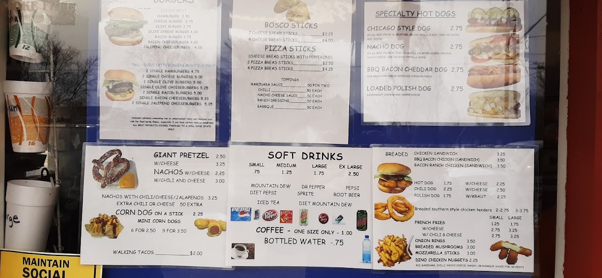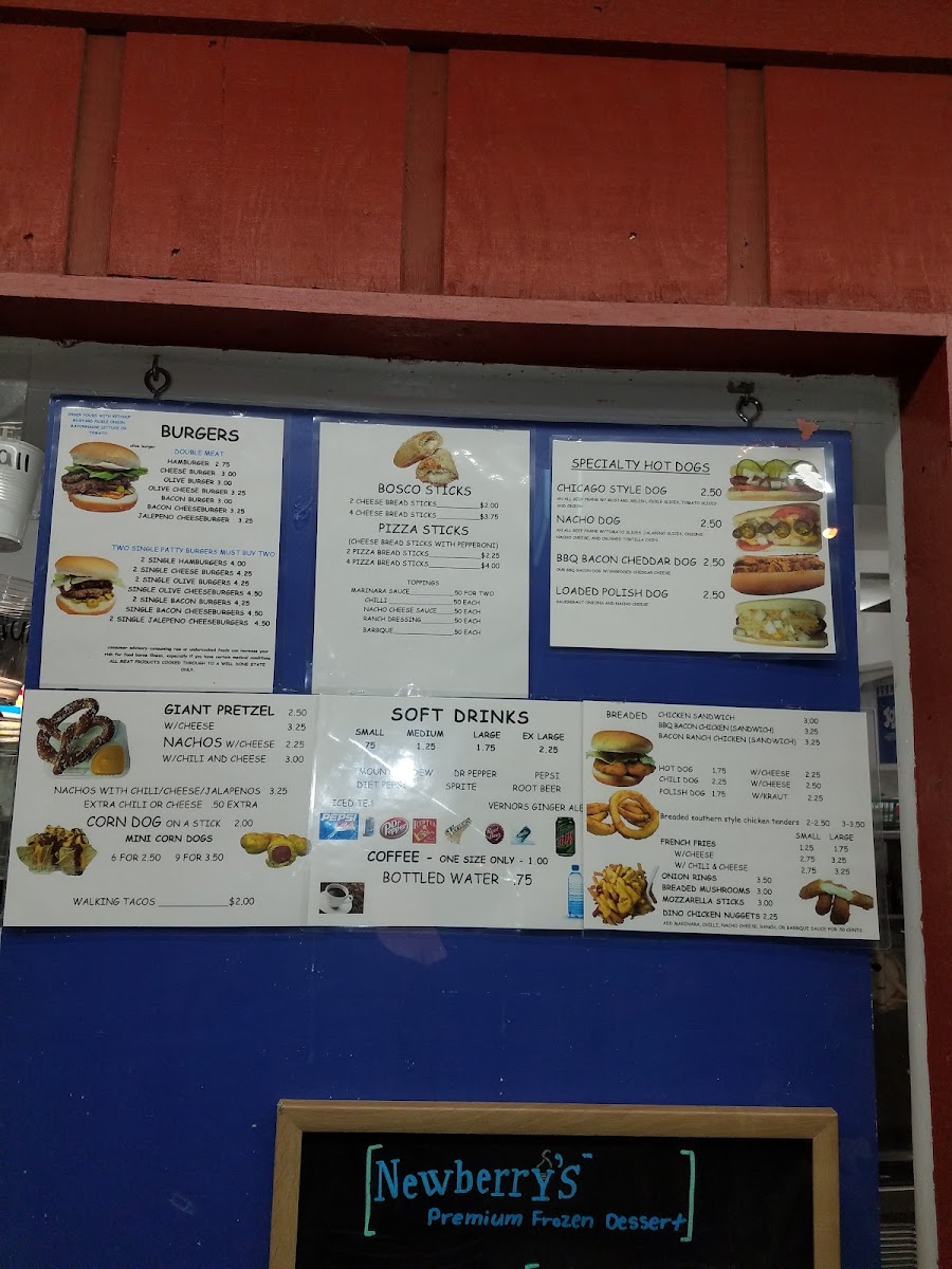 The ice cream selection features generous sundaes and creative flavors, such as the S'Mores Sundae or the raspberry and brownie varieties, inviting guests to savor comforting desserts in a laid-back setting. Alongside these, hearty options like the bacon cheeseburger with deluxe toppings and the olive burger provide satisfying bites that complement a casual dining experience. Crisp fries, both classic and with cheese, and snacks like the unsalted pretzel with cheese add to the range of comforting sides available.